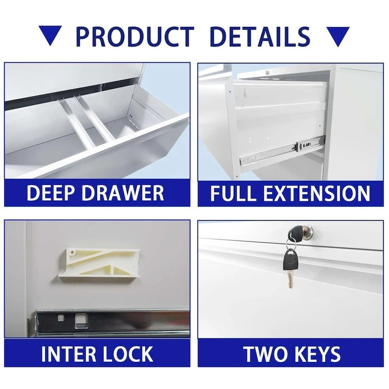 Fabrication haut de gamme : Conçu avec précision, ce classeur latéral bénéficie d’une construction robuste qui garantit une stabilité optimale au quotidien. Sa surface est recouverte d’un revêtement en poudre lisse, offrant une protection contre les rayures et assurant un aspect impeccable et durable.