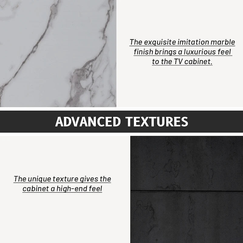 - [Processus antirouille amélioré et conception silencieuse] Nous utilisons des goupilles de porte antirouille pour prolonger la durée de vie du produit. De plus, les pieds du meuble TV sont galvanisés pour prévenir l'oxydation du métal. Ce procédé améliore non seulement la résistance à l'usure des pieds, mais confère également au meuble TV une esthétique plus raffinée.