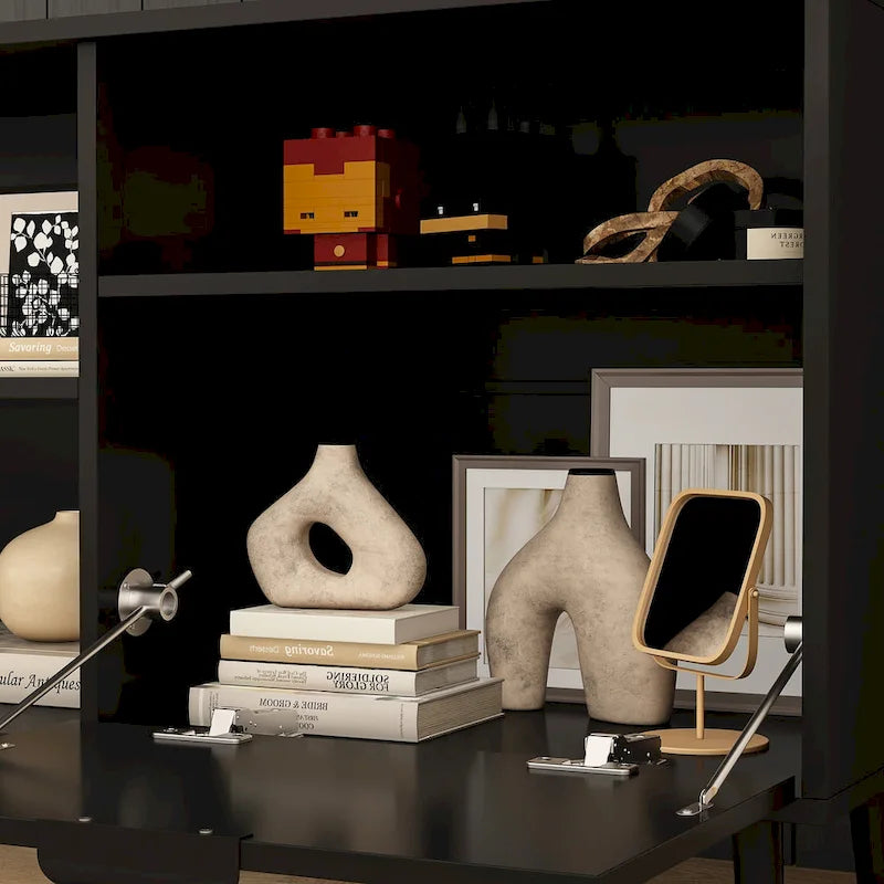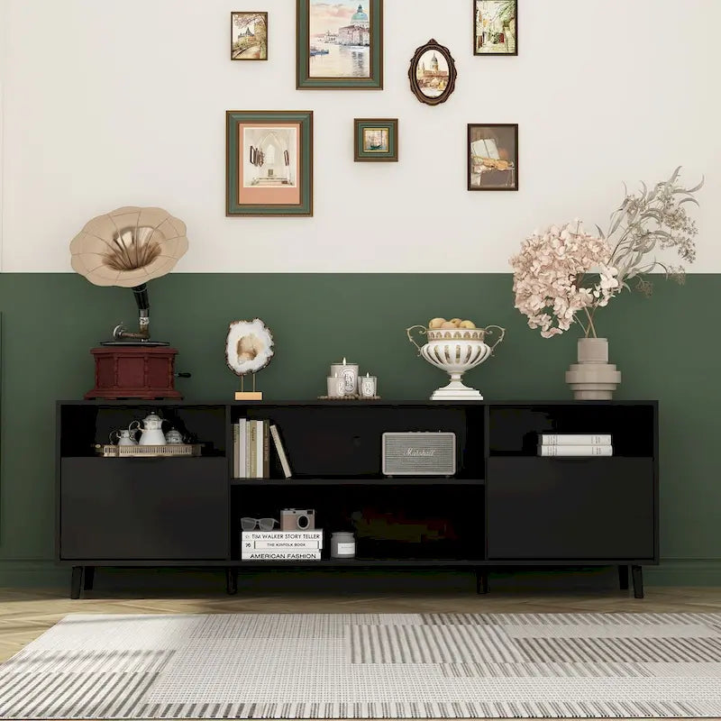 Conception flexible : L'étagère centrale est amovible pour faciliter l'installation d'une cheminée électrique.