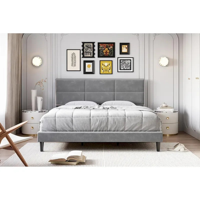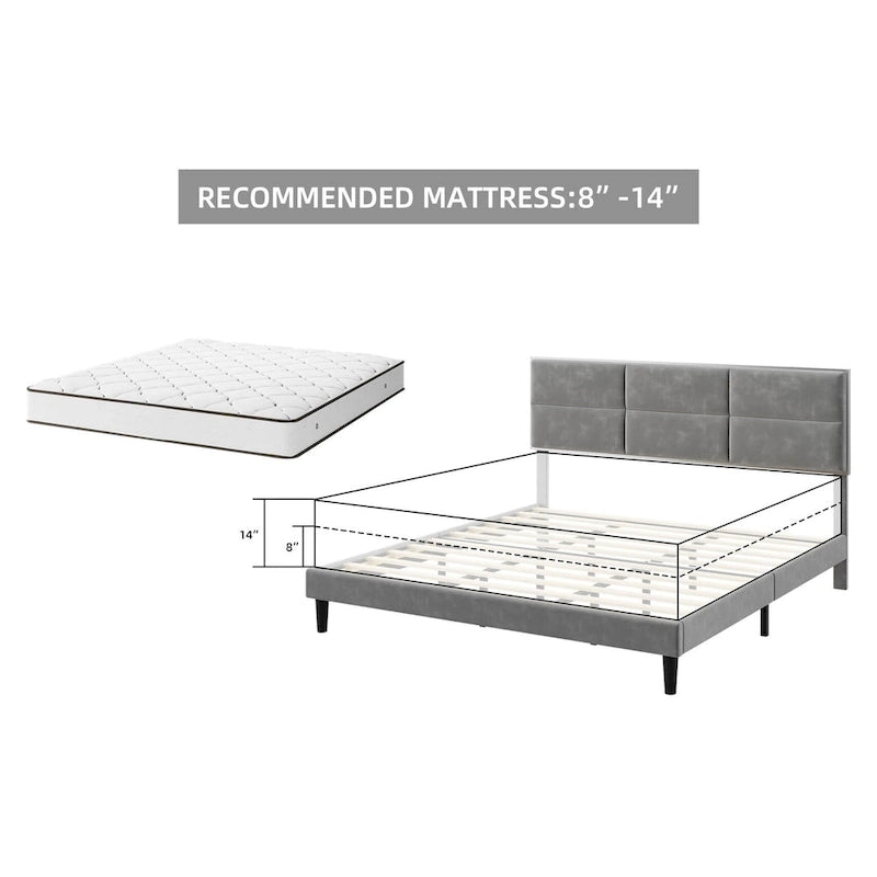 Cadre de lit plateforme rembourré avec tête de lit carrée en velours