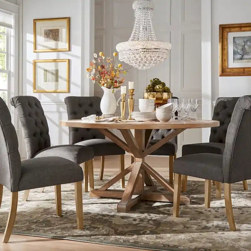 Ensemble de salle à manger 7 pièces Benchwright Rustic X-base Round Pine Wood Rolled Back par iNSPIRE Q Artisan