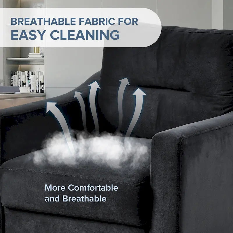 Fauteuil d'appoint noir moderne 32,2 cm, capitonné, avec structure robuste en bois massif et coussin moelleux