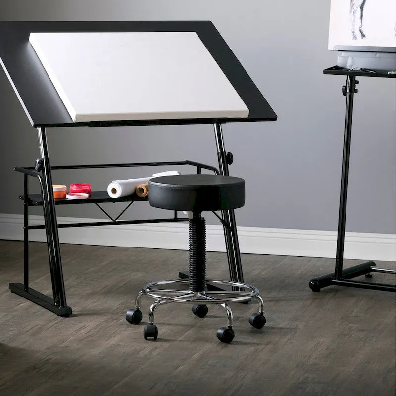 Conçu pour un confort et une facilité d'utilisation optimaux, le tabouret rembourré à hauteur réglable avec repose-pieds est idéal pour les cabinets médicaux, les spas, les salons de beauté ou les domiciles. Son vérin à gaz permet un réglage aisé de la hauteur d'assise de 57 à 72 cm. L'assise et le repose-pieds en mousse moulée de 8,25 cm d'épaisseur offrent un confort accru tout au long de la journée. Son piètement chromé robuste à cinq branches, équipé de roulettes doubles couvertes, assure une mobilité fluide et aisée, idéale pour votre environnement professionnel. Ce tabouret polyvalent convient également parfaitement aux ateliers d'artistes, aux salons de tatouage ou à la maison.