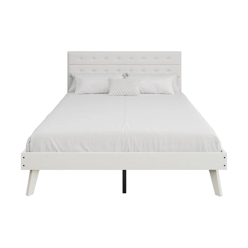 Sublimez votre chambre avec notre lit à tête de lit capitonnée, alliant élégance et confort. Le panneau de la tête de lit, revêtu de lin et rembourré de mousse, assure un confort et un soutien optimaux. Grâce à ses quatre pieds de soutien centraux (pour les tailles Double/Queen) et ses huit pieds (pour la taille King), sa stabilité est garantie. Fabriqué en bois d'hévéa massif et en MDF, ce lit offre une grande durabilité. Le sommier à lattes inclus vous dispense de l'utilisation d'un sommier tapissier. Disponible en tailles Simple, Double, Queen et King, et en deux finitions élégantes (Chêne clair et Blanc) pour s'harmoniser avec tous les styles de décoration. Le montage est un jeu d'enfant grâce aux instructions claires et le lit est livré dans un seul carton.