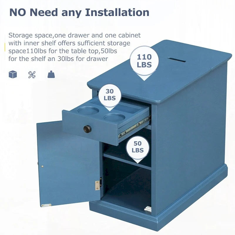 Table d'appoint avec ports USB et un tiroir multifonctionnel avec porte-gobelets