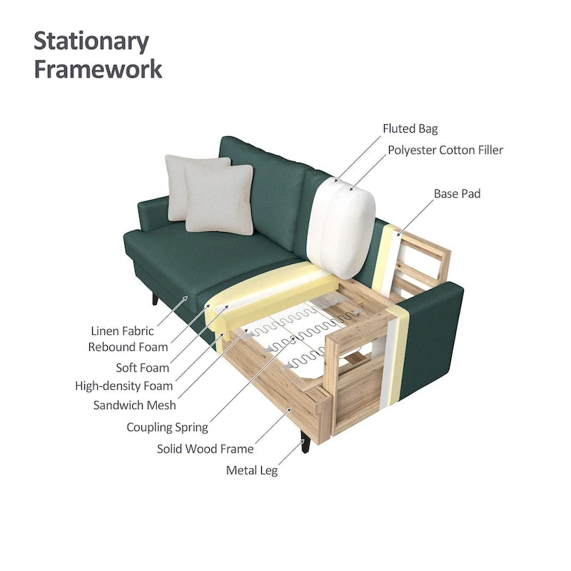 - Durabilité : Ce canapé est fabriqué en lin résistant, en mousse haute densité et possède des pieds en métal qui lui permettent de résister à une utilisation intensive.