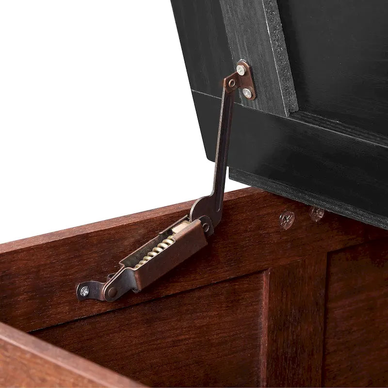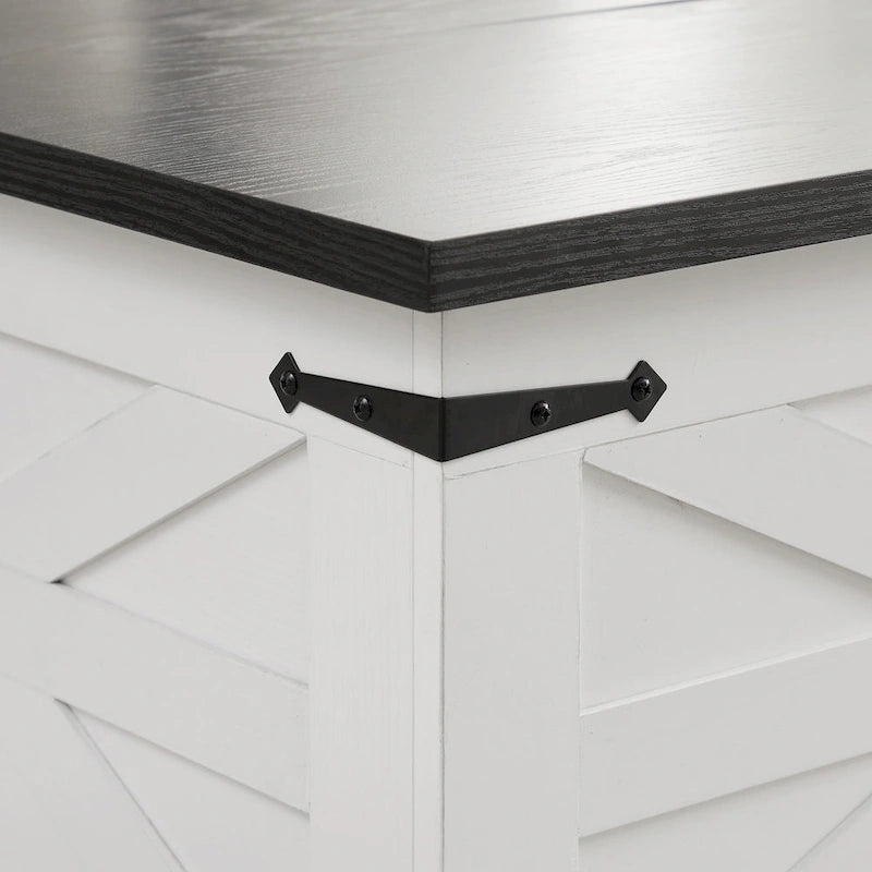 Table basse carrée de style campagnard en bois avec grand compartiment de rangement dissimulé et plateau relevable à charnières, idéale pour le salon.