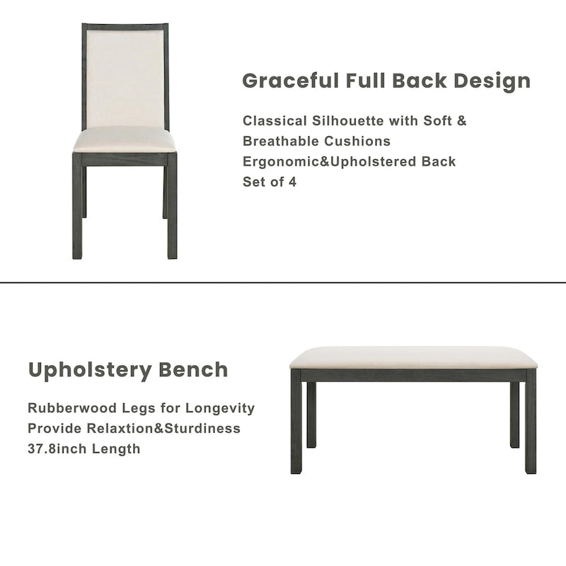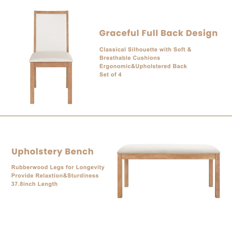 Ensemble de salle à manger style campagnard 6 pièces avec 4 chaises de salle à manger rembourrées et un banc