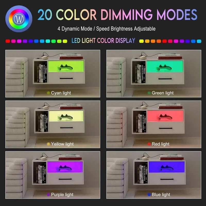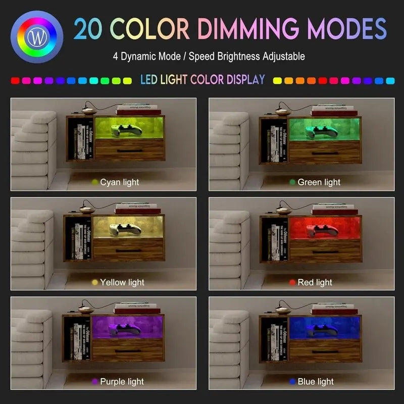 Découvrez la fraîcheur des lumières RGB : avec 20 couleurs changeantes qui s’harmonisent parfaitement avec la finition brun clair, vous trouverez toujours l’éclairage idéal pour créer l’ambiance parfaite dans votre chambre. Utilisez cette table de chevet LED comme veilleuse et contrôlez les lumières RGB grâce à la télécommande sans fil pour une expérience lumineuse dynamique (pour plus d’exemples d’éclairage, veuillez consulter les images).