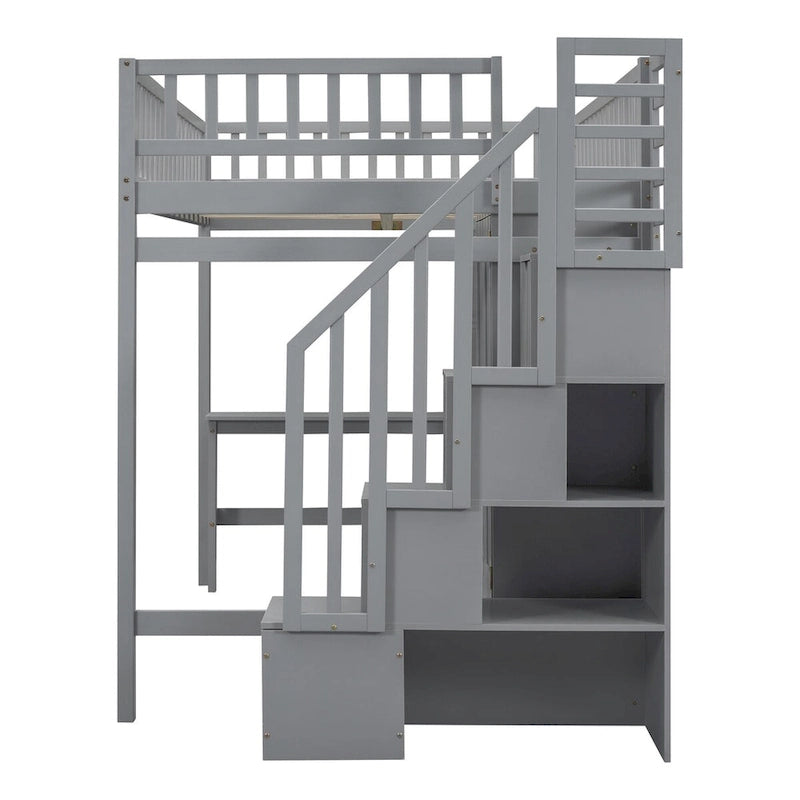 Lit mezzanine complet avec escalier, cadre de lit mezzanine, armoire, bureau, bibliothèque et tiroirs