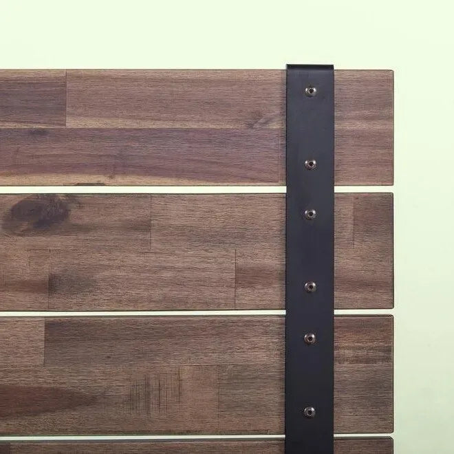 Détendez-vous avec style ! Le lit plateforme bas industriel en bois d'acacia Farmhouse, de taille standard, est la pièce maîtresse de cette chambre au style industriel affirmé. Fabriqué artisanalement en bois d'acacia massif, chaque pièce présente des nœuds et des motifs uniques. Son design épuré, rehaussé d'une tête de lit à lattes et de ferrures en métal et laiton, ne passe pas inaperçu. Symbole de robustesse et de durabilité, ce lit Farmhouse est entièrement construit en bois massif, acier fiable et lattes en contreplaqué pour un soutien optimal du matelas. Son design bas et épuré, orné de moulures sur les quatre côtés, sublimera votre chambre. Son emballage soigné et son montage en moins d'une heure en font un lit qui vous séduira à coup sûr.