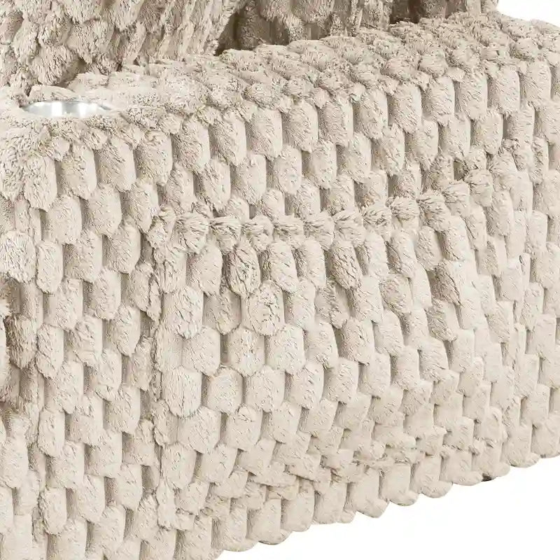 Cette méridienne surdimensionnée est revêtue d'un tissu côtelé doux au luxueux motif alvéolé, alliant style et confort. Elle est équipée de deux porte-gobelets fixes sur chaque accoudoir et d'une poche latérale pratique pour ranger vos affaires. Sa structure en mousse compressée offre un soutien optimal, faisant de cette méridienne l'endroit idéal pour se détendre.