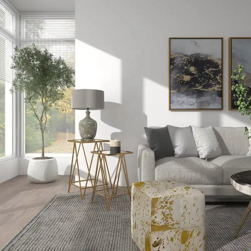 Apportez la touche finale à votre intérieur avec cette table d'appoint élégante et raffinée. Compacte et pratique, elle offre un espace de rangement supplémentaire où vous le souhaitez. Placez ce lot de 2 tables d'appoint dorées à côté de votre canapé ou de votre causeuse pour un accès facile à vos objets et une note stylée à votre salon. Livré en un seul carton. Usage intérieur uniquement. Livré entièrement assemblé. Poids maximal supporté : 45 kg. Ce lot de 2 tables d'appoint en fer doré présente un style contemporain.