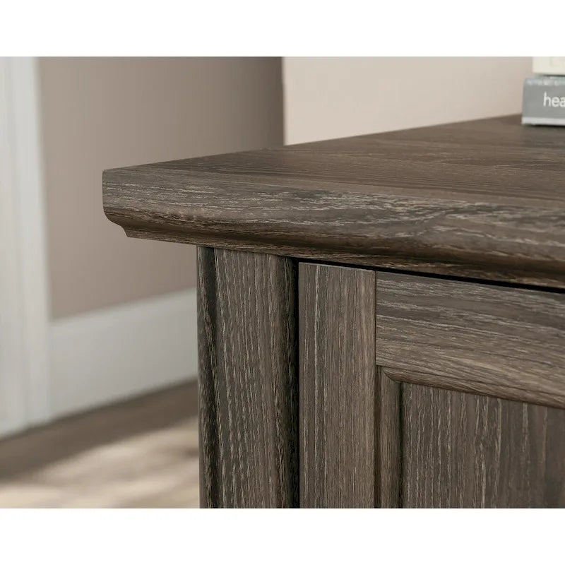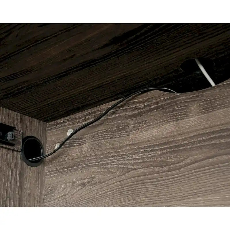 Un bureau fonctionnel et pratique. Ce bureau d'ordinateur de la collection Hammond allie style raffiné et rangements pratiques. Son plateau robuste de 2,5 cm d'épaisseur, équipé de tiroirs, offre un espace généreux pour votre ordinateur portable, une lampe, des stylos et des photos de vos proches. Ce bureau dispose d'un tiroir central à façade rabattable pour clavier et souris, optimisant ainsi l'ergonomie de votre espace de travail et libérant votre surface de travail. Deux tiroirs à dossiers suspendus au format lettre permettent une organisation optimale de vos documents importants. Un compartiment dissimulé derrière la porte accueille une tour d'unité centrale et est doté d'une étagère réglable pour ranger des objets de différentes hauteurs. Un système de gestion des câbles avec passe-câbles intégré permet de dissimuler les fils. Avec sa finition soignée sur toutes les faces, ce bureau offre une grande polyvalence d'installation et une allure impeccable sous tous les angles. Ce bureau est compatible avec le chargeur sans fil Qi dissimulé Eggtronics 425905 (vendu séparément - plus d'informations sur sauder.com). Avec sa finition en chêne Emery et ses pieds en bois massif, ce bureau d'ordinateur transforme votre espace en un lieu de travail à domicile professionnel.