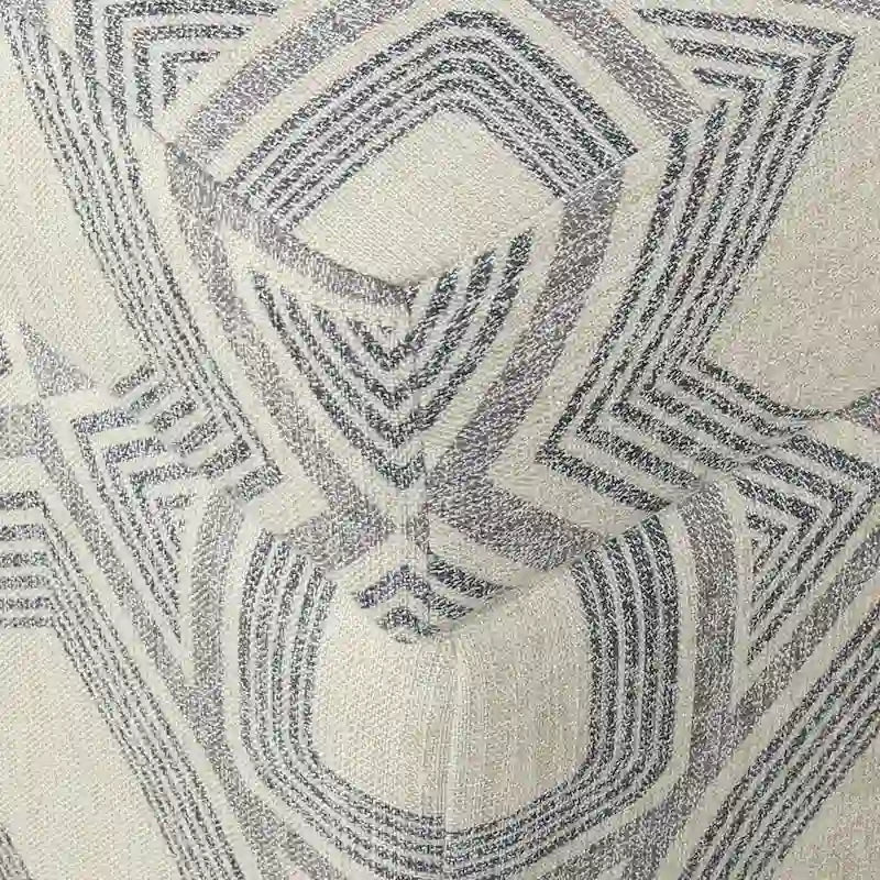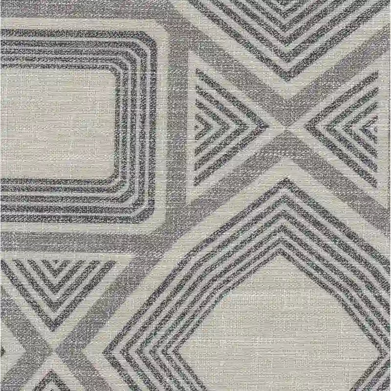 - Motif géométrique gris, finition gris délavé, pieds en bois