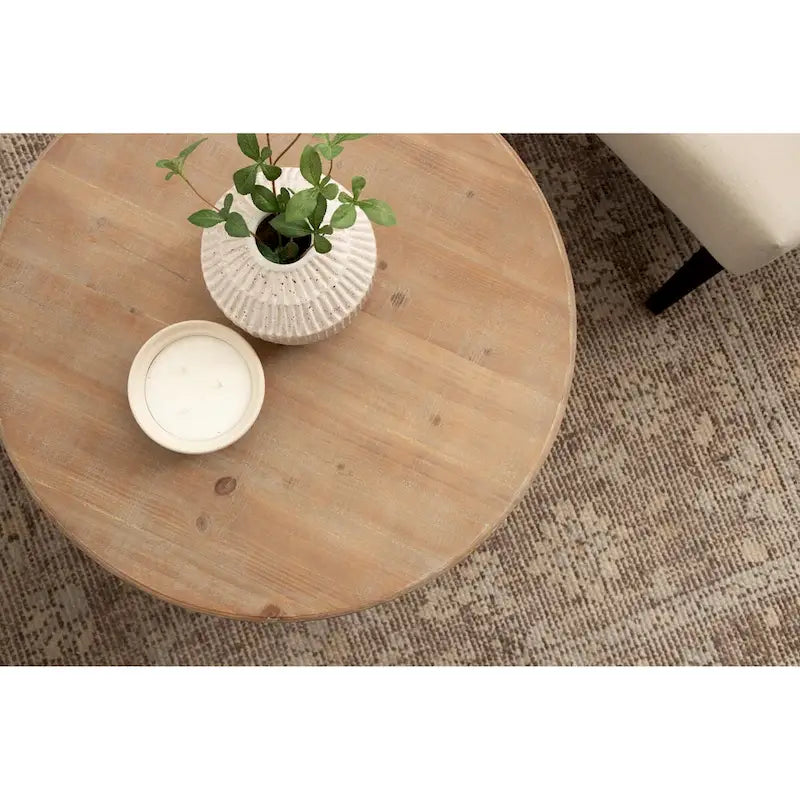 - Design rustique de ferme avec une élégante courbure dans la base et un plateau de table rond