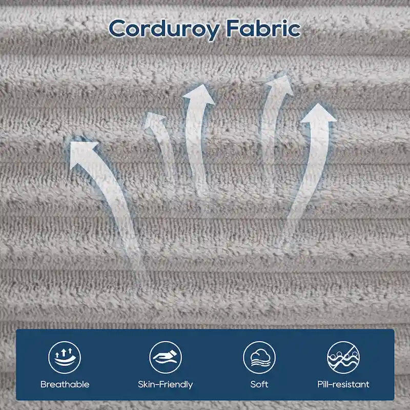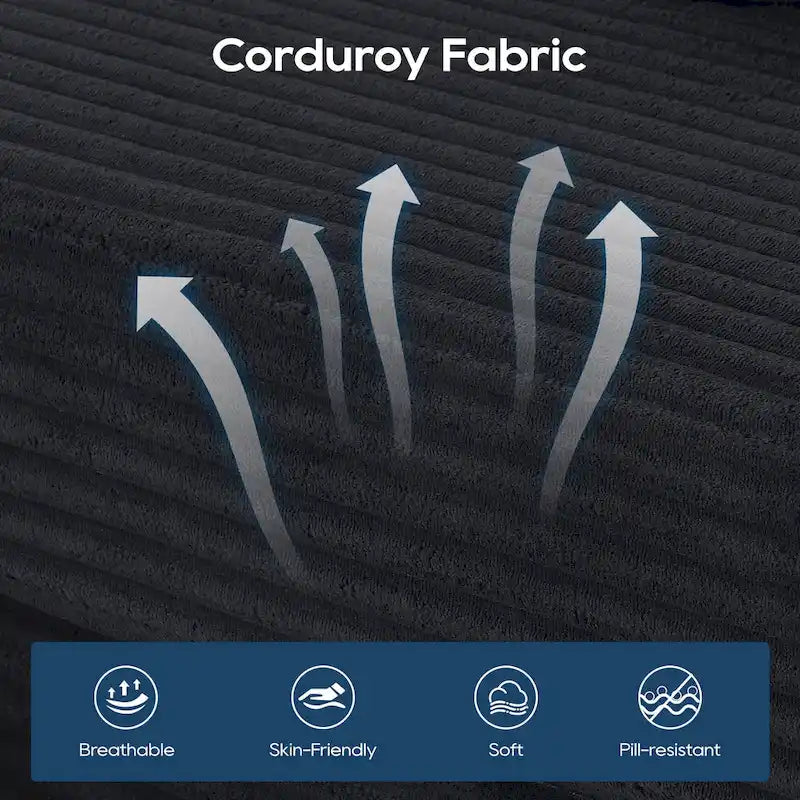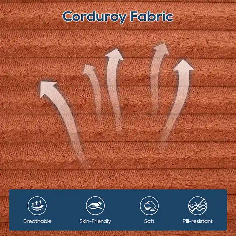 - Tissu velours côtelé de luxe : Revêtu d’un velours côtelé doux et résistant, ce canapé apporte une touche rustique aux intérieurs modernes. Le tissu texturé résiste aux griffures d’animaux et aux taches, préservant ainsi son élégance même dans les pièces à fort passage.