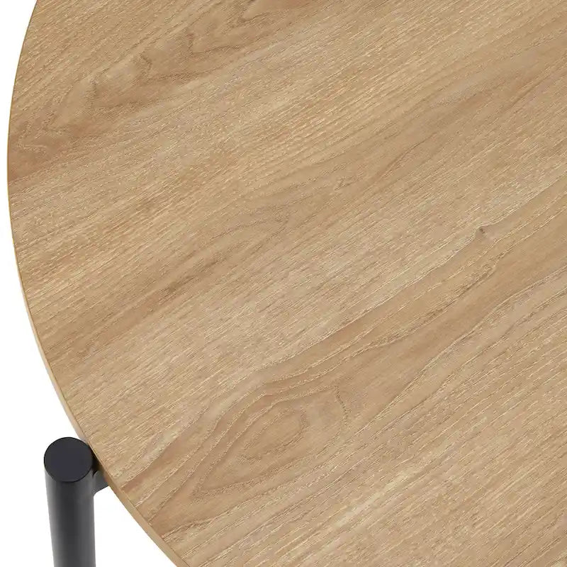 La collection de salle à manger ronde Jari de Lifestorey crée une ambiance conviviale propice aux repas et aux échanges. Avec son design bicolore moderne, cet ensemble comprend une table ronde de 94 cm de diamètre et des chaises rembourrées, parfaitement adaptées aux petits espaces. Le plateau de la table est réalisé en placage de chêne clair sur MDF, pour une esthétique fraîche et naturelle. Les pieds de la table et des chaises sont en métal noir thermolaqué, garantissant une grande durabilité. Les chaises, avec leurs courbes élégantes et leur silhouette élancée, apportent une touche vintage. Confortables et tendance, elles sont dotées d'un rembourrage moelleux recouvert d'un tissu beige effet lin. Le dossier est en bois lamellé-collé courbé et plaqué, avec une finition chêne clair. Disponible en ensembles 3 ou 5 pièces.