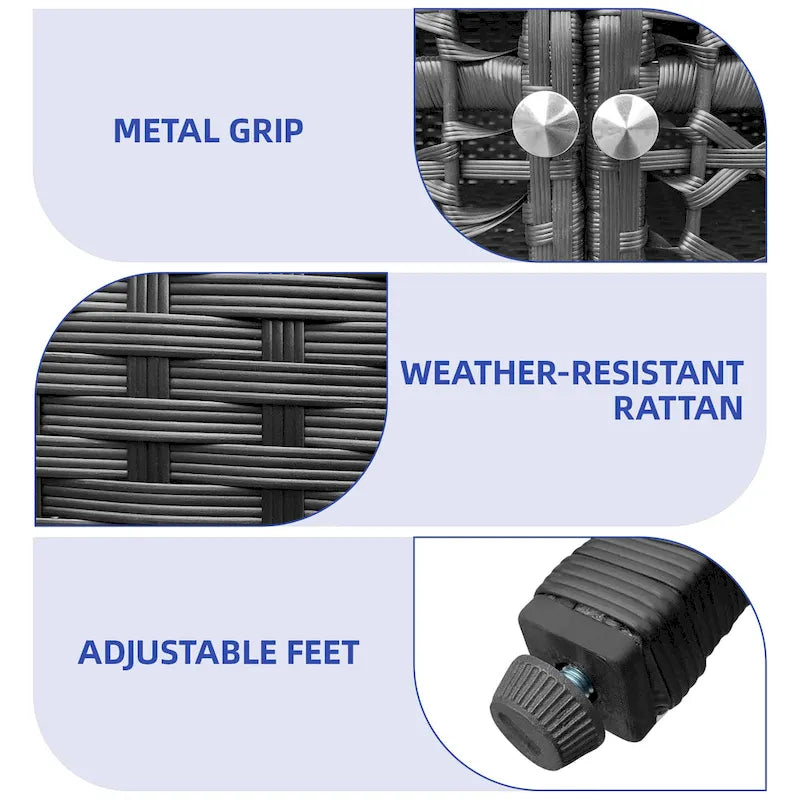 - Matériaux : rotin robuste et acier