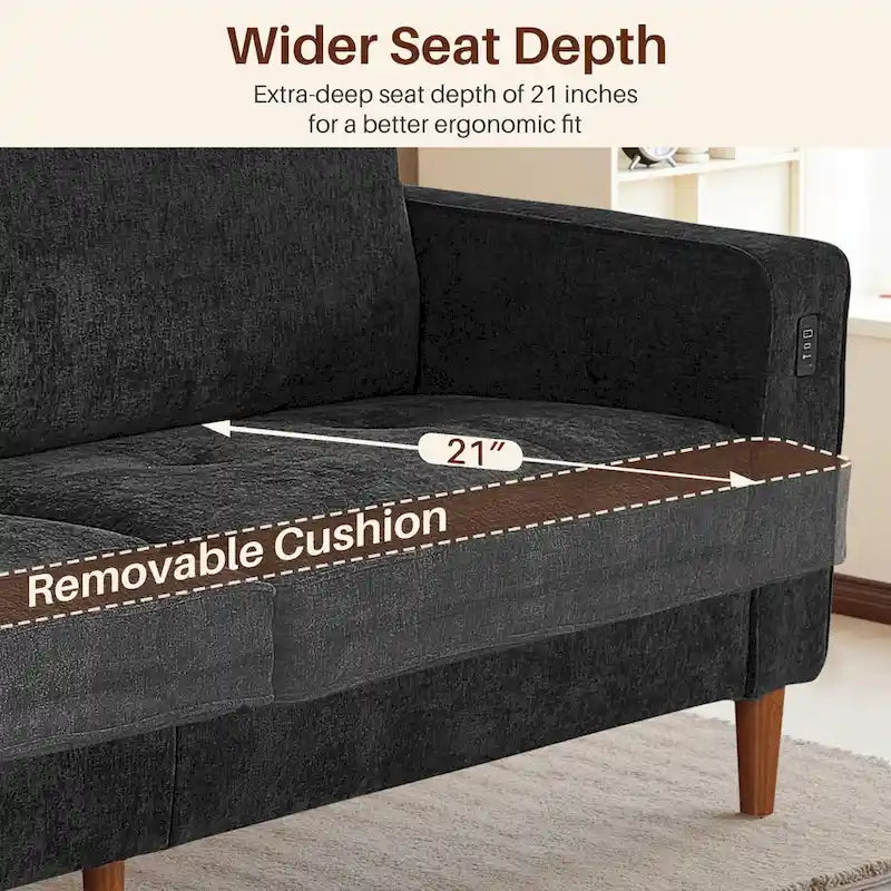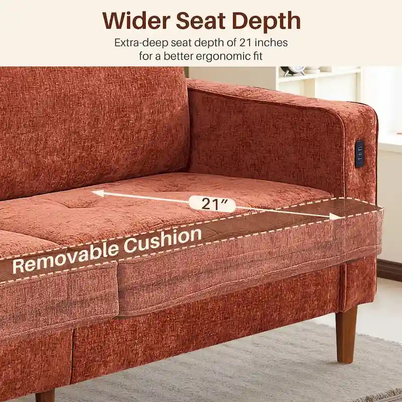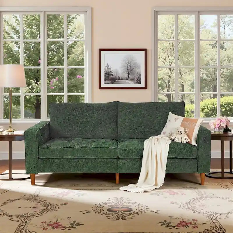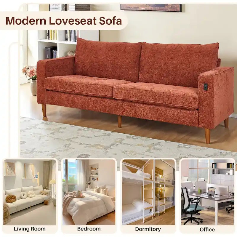 Canapé deux places moderne de 82,68 pouces (210 cm) en chenille avec ports USB pour votre salon.