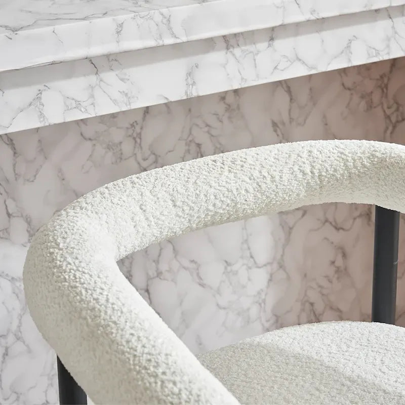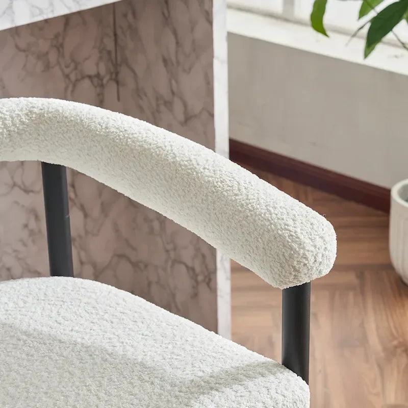 - Design moderne et élégant. Sublimez votre espace avec nos tabourets de bar modernes et rembourrés, dotés d'une élégante structure en métal noir et d'un tissu bouclé moelleux. Leur esthétique minimaliste apporte une touche sophistiquée à votre cuisine, votre salle à manger ou votre bar.