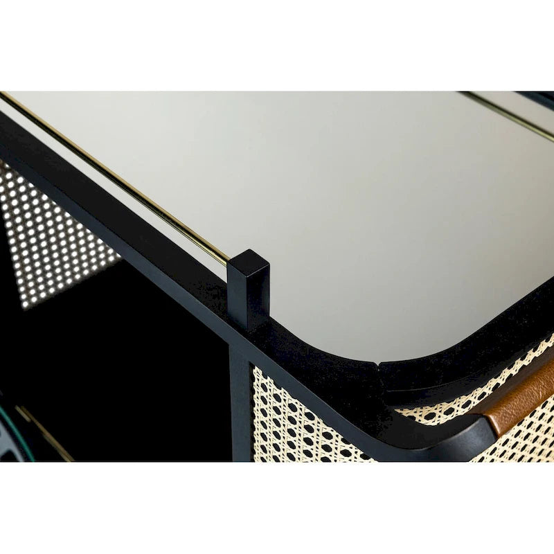 Le chariot de bar Dinda est un meuble élégant et polyvalent qui trouvera sa place dans votre intérieur. Fabriqué au Brésil, ce chariot de bar moderne présente une structure robuste et élégante en bois de Tauari massif, alliant solidité et raffinement. Son plateau miroir apporte une touche de glamour et met en valeur vos verres et votre décoration. La poignée gainée de cuir offre une note luxueuse, tandis que les détails en métal doré poli ajoutent une touche d'élégance. Grâce à ses roulettes pratiques, le chariot de bar Dinda se déplace facilement pour s'adapter à vos réceptions, et le charme naturel du cannage lui confère une esthétique moderne et unique.