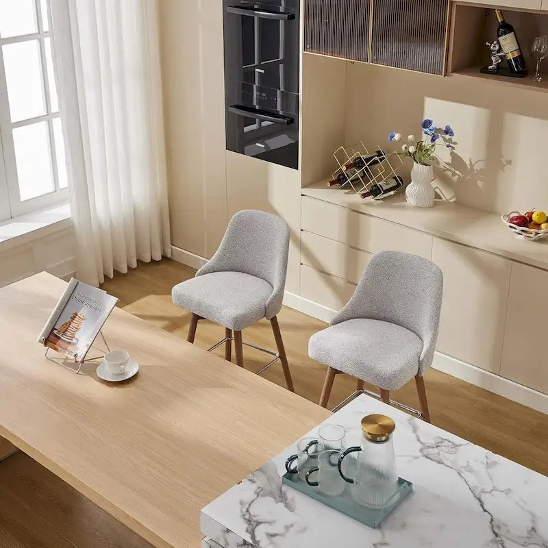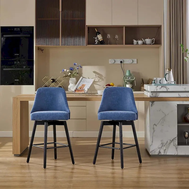 Fonction pivotante à 360° : La fonction pivotante de ces tabourets de bar permet une grande liberté de mouvement, facilitant les pivotements et les interactions sous différents angles pour une meilleure communication. Elle optimise le confort et permet également de renforcer les muscles du tronc, offrant ainsi une assise dynamique. Robustes et stables : Dotés de pieds en hêtre massif, plus denses et plus robustes que l'hévéa, ces tabourets sont conçus pour durer. Leur finition noire brossée moderne et leur structure en X renforcent leur durabilité et supportent un poids maximal de 159 kg. Les patins réglables dissimulés assurent une stabilité optimale, protègent des rayures et réduisent le bruit pour une esthétique irréprochable. Confort et soutien améliorés : Le coussin d'assise est confectionné dans un tissu de haute qualité et garni de mousse à mémoire de forme, garantissant un confort durable même en cas d'utilisation prolongée. La courbure ergonomique du dossier offre un soutien enveloppant, tandis que les pieds en bois apportent une touche de simplicité et de texture qui sublimera votre décoration intérieure. Polyvalents et élégants : Ces tabourets de bar pivotants à hauteur de comptoir sont disponibles avec deux revêtements de haute qualité : cuir PU ou tissu chenille. Ces tabourets hauts arborent un design contemporain qui apporte une touche d'élégance à tout comptoir de bar ou îlot de cuisine. Idéaux pour le salon, la cuisine, un bistro, un bureau, une salle à manger, un café ou un restaurant, ils rehaussent n'importe quel espace grâce à leur allure raffinée. Montage facile : des instructions claires sont fournies avec ces tabourets de bar pour un montage aisé en seulement 15 minutes par tabouret.