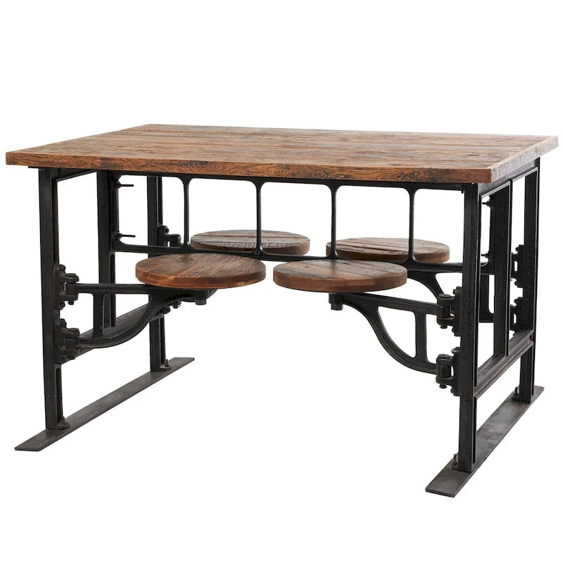 - Ces tables de salle à manger de style industriel sont dotées de 2, 4 et 8 places assises intégrées, ce qui permet de gagner de la place dans les petits intérieurs.