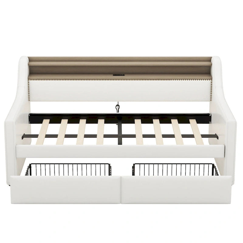 Lit de jour rembourré deux places avec rangement et éclairage LED