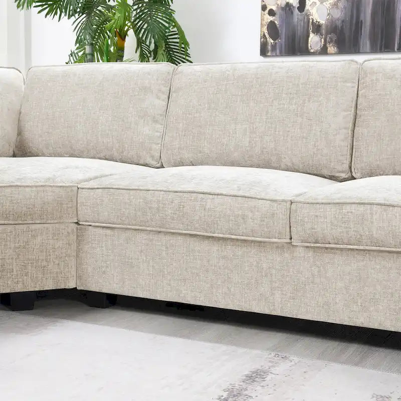 Ce canapé moderne allie un confort exceptionnel à un design fonctionnel. Son tissu chenille offre un toucher doux et moelleux, idéal pour se détendre ou recevoir des invités. Son design original, avec ses angles irréguliers, optimise l'espace d'assise, tandis que les porte-gobelets intégrés aux accoudoirs offrent un confort supplémentaire. Doté d'une structure en bois massif et de pieds en plastique renforcé, ce canapé est conçu pour durer et assurer une grande stabilité, ce qui en fait un atout idéal pour tout salon.