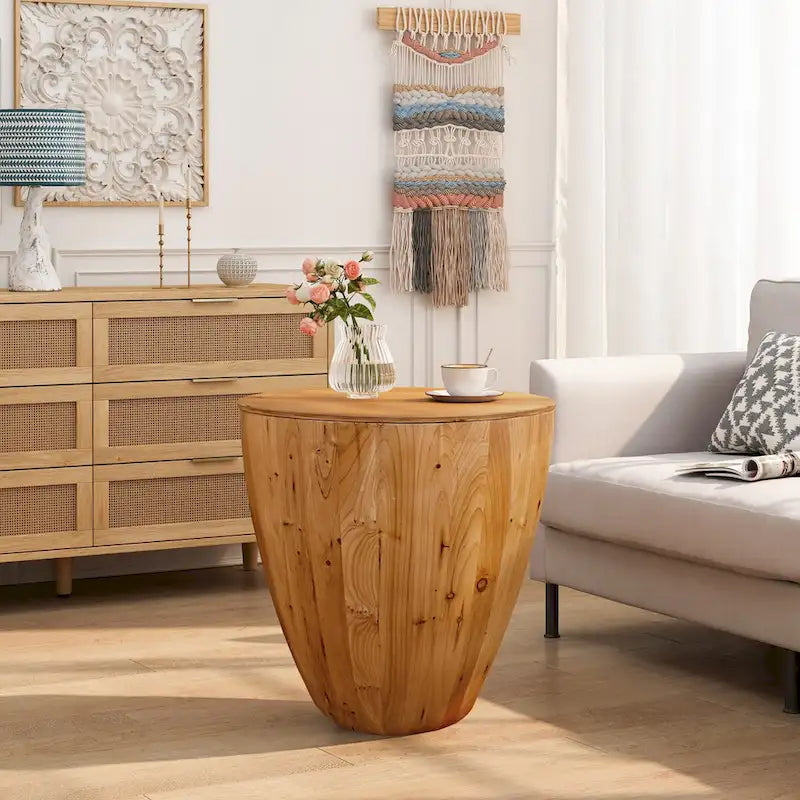 Fonction de rangement : Cette table basse en forme de tonneau est creuse et s’ouvre pour offrir un espace de rangement pratique au quotidien. Son intérieur permet de ranger petits objets, en-cas, livres et autres articles de première nécessité, pour un salon propre et ordonné. De plus, son large plateau est idéal pour y disposer vos plantes, photos et objets décoratifs préférés.