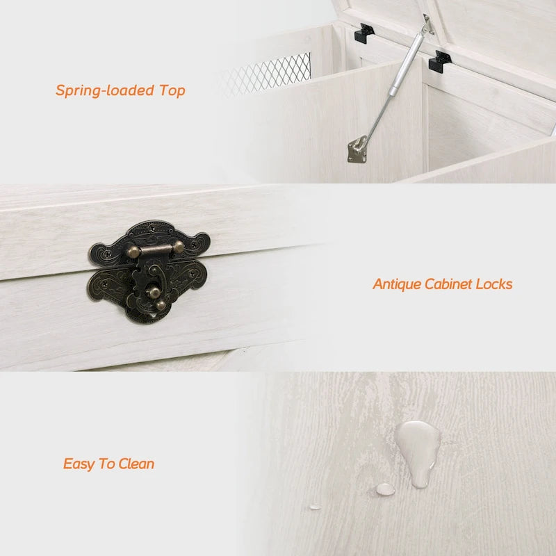 Design rétro pour une compatibilité universelle. Adoptant une esthétique rétro intemporelle, ce meuble s'intègre harmonieusement à un large éventail de styles d'intérieur. Les angles décoratifs en métal et les éléments en maille de fer, associés au grain du bois blanc vieilli, confèrent à cette table d'appoint un style rétro industriel affirmé.