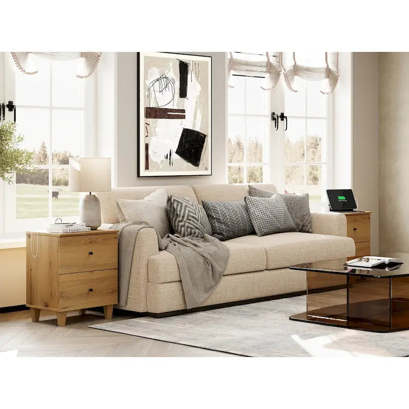 Table d'appoint WAMPAT avec station de recharge et 2 tiroirs pour salon