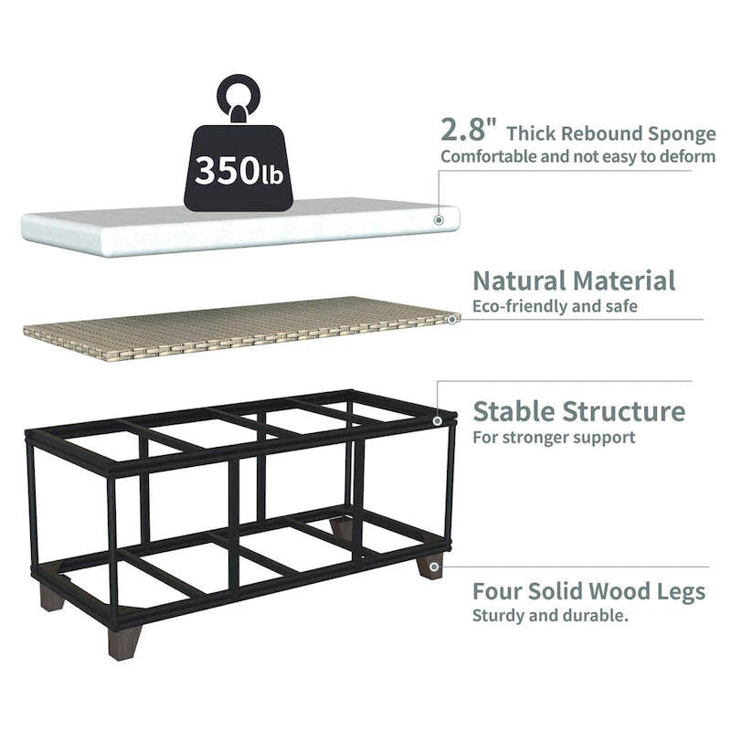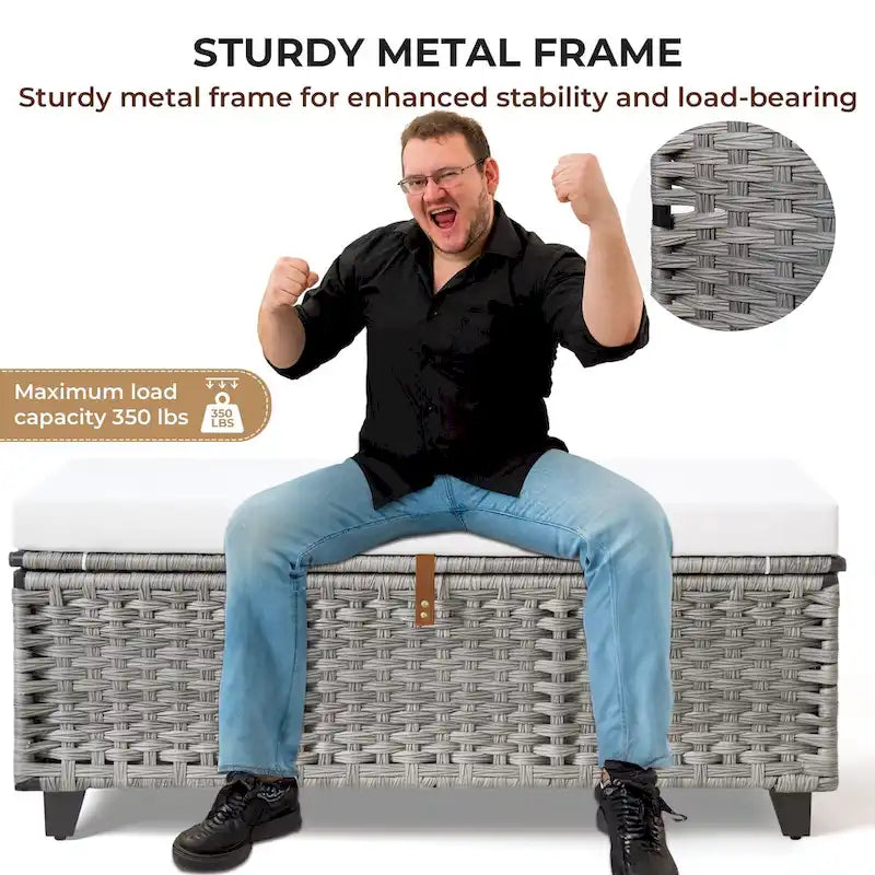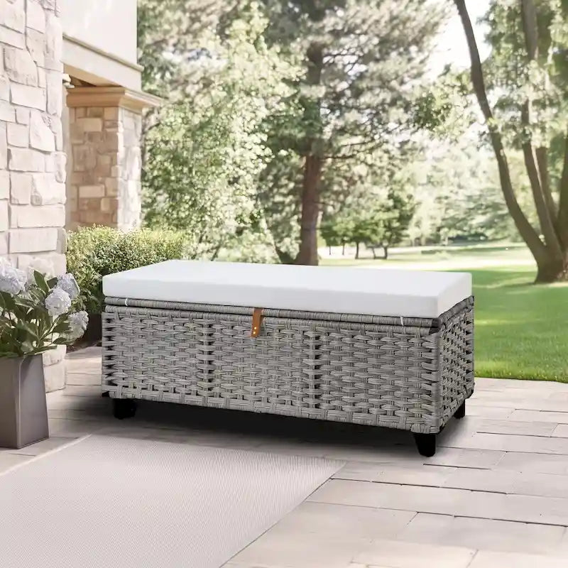 Banc de rangement en osier avec coussin pour chambre, salon, véranda - 47 cm H x 110 cm L x 47 cm P